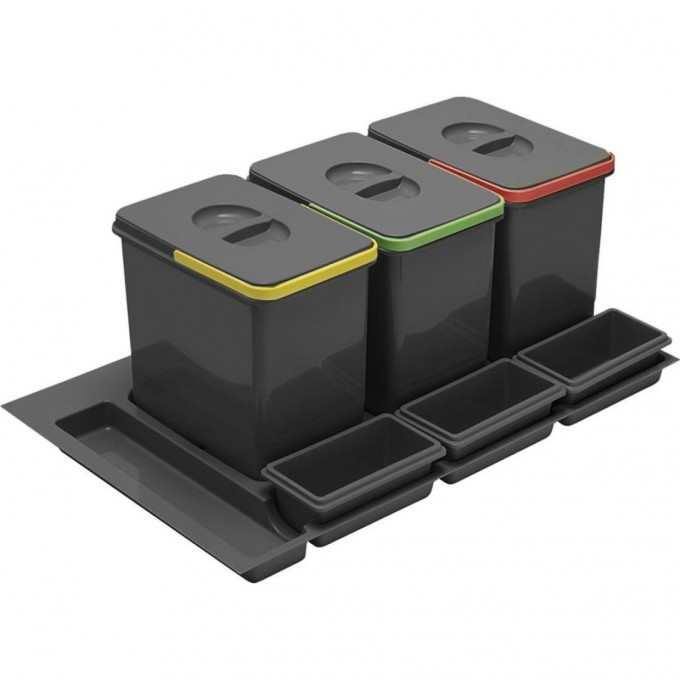 Комплект вёдер МУЛЬТИНО – набор вместительных емкостей для бытовых отходов, предназначенный для установки в ящики выдвижной системы Modern Box. Комплект ведер подбирается с учетом ширины мебельного модуля и глубины ящика. Ведра изготовлены из экологичного пластика и позволяют сортировать мусор в соответствии с современной практикой утилизации отходов.